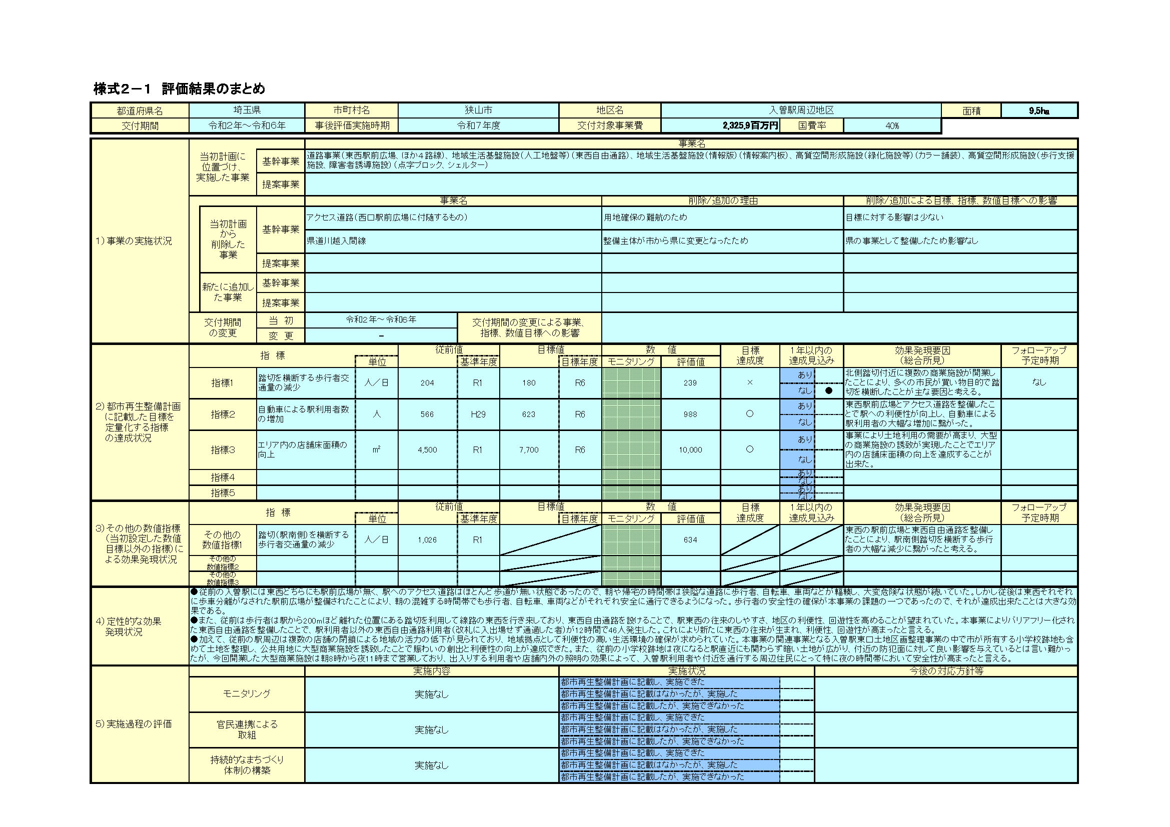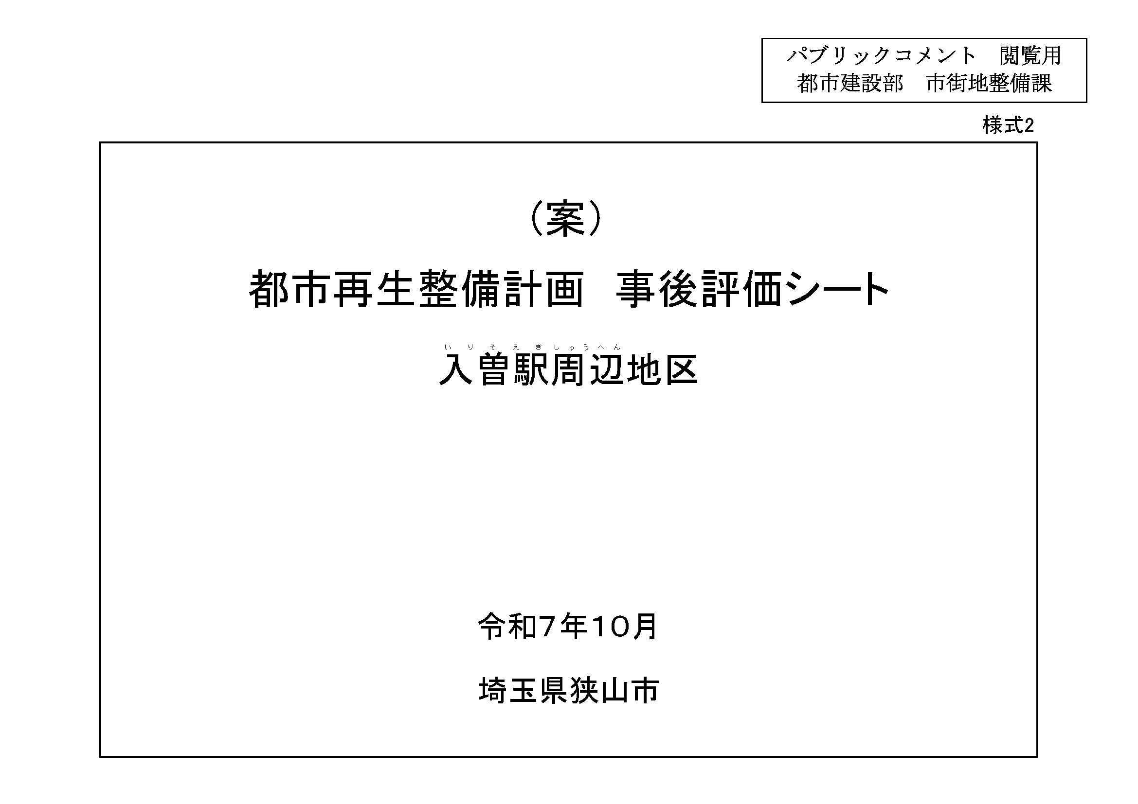 入曽駅周辺整備事業の中で、国から市に交付された補助金の対象期間終了に際して行う事後評価の素案について、市民から広く意見を聴取するために実施されたパブリックコメントです。(詳しくは狭山市のページをご覧ください)